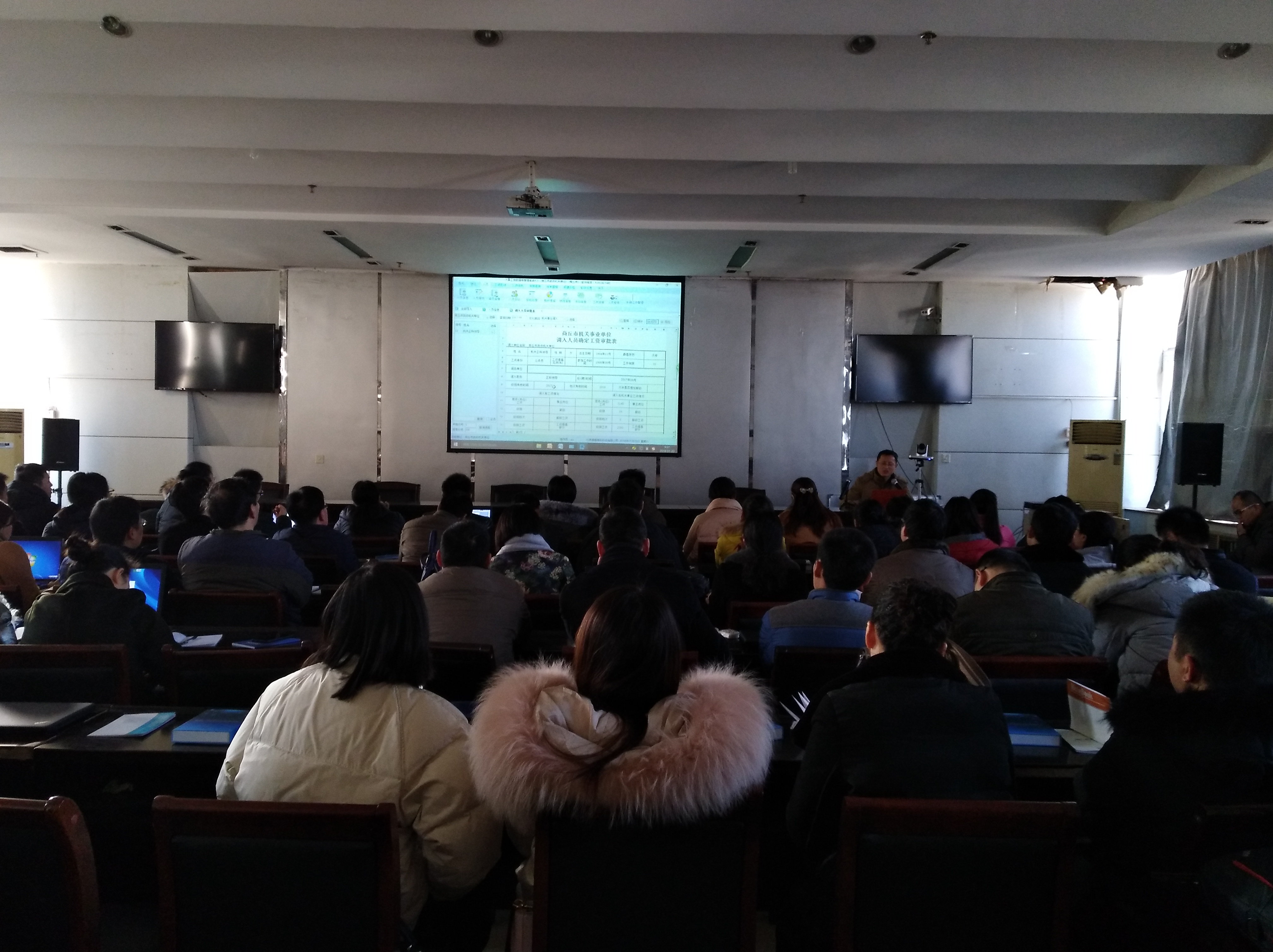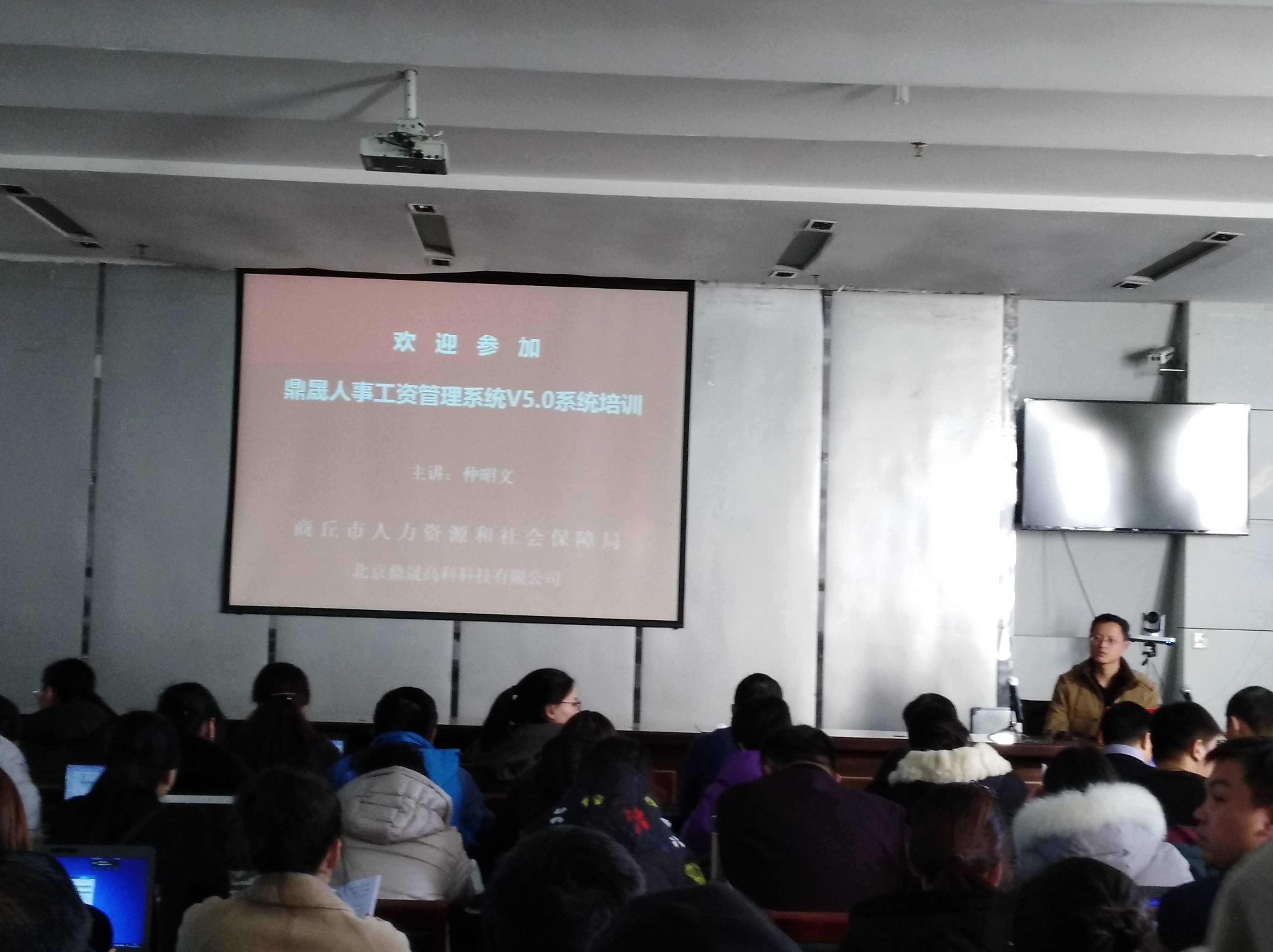 2017年12月21日,商丘市人社局联合鼎晟公司,在商丘市人社局大会议室,举办了2017年度商丘市直鼎晟人事工资V5.0系统软件培训会,全市各机关事业单位工资管理人员均数参加会议,上下午两个课时,各课程历时近两个半小时。